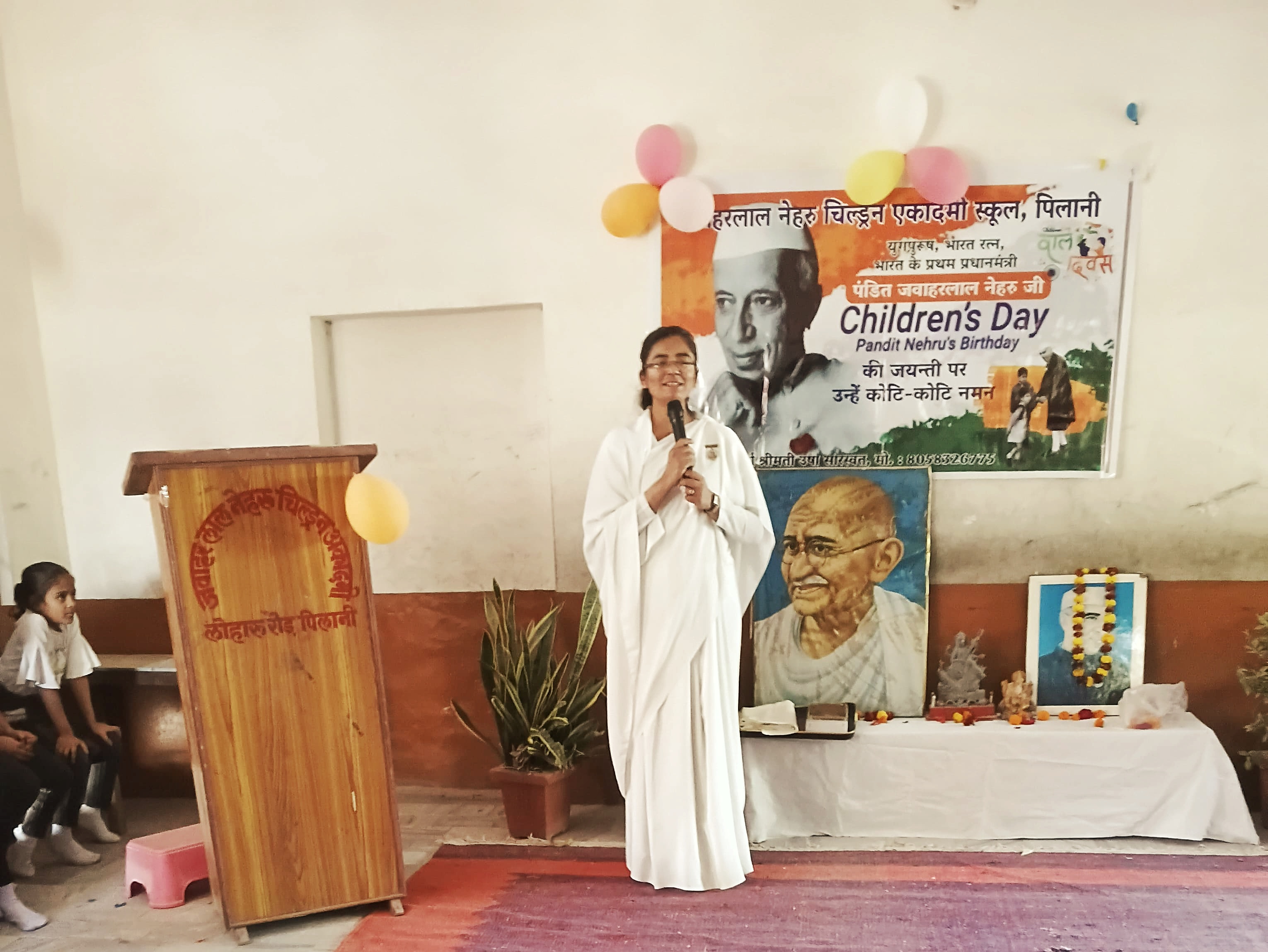 जवाहर लाल नेहरू स्कूल, पिलानी में बाल दिवस के शुभ अवसर पर एक भव्य समारोह का आयोजन किया गया। इस समारोह में ब्रह्मा कुमारीज़ पिलानी सेवाकेंद्र की प्रभारी राजयोगिनी बी.के. स्वाति दीदी जी को मुख्य अतिथि के रूप में सम्मान आमंत्रित किया गया।